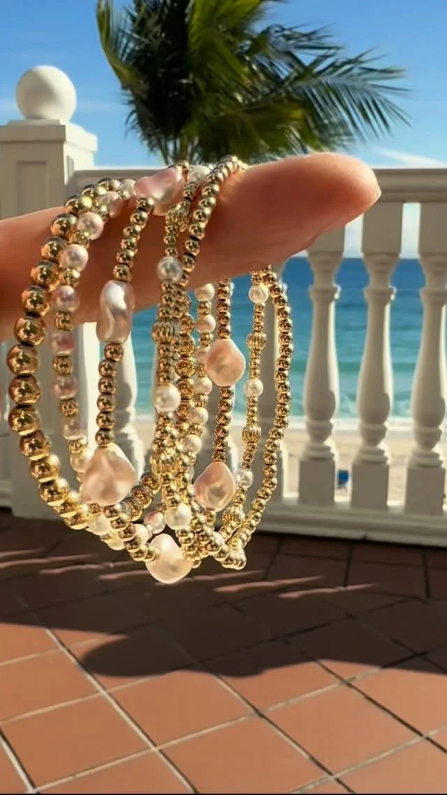 Our gold and pearl Roman Charm Analisa Stack brings timeless elegance to your daily routine—whether you're grabbing coffee, working from home, or heading out for the night. Designed to move with you, this effortlessly chic stack is your new go-to for looking polished without even trying.