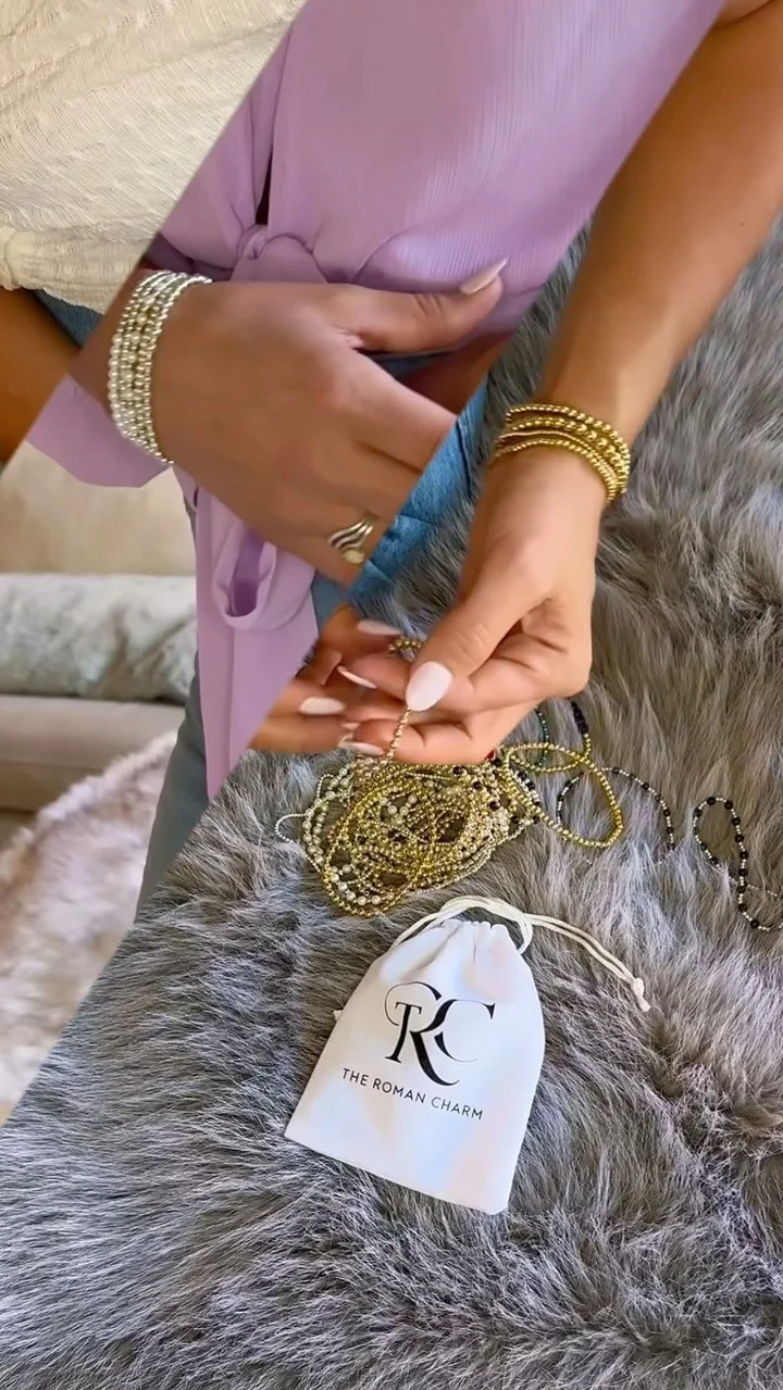 Our gold and pearl Roman Charm Analisa Stack brings timeless elegance to your daily routineβwhether you're grabbing coffee, working from home, or heading out for the night. Designed to move with you, this effortlessly chic stack is your new go-to for looking polished without even trying.